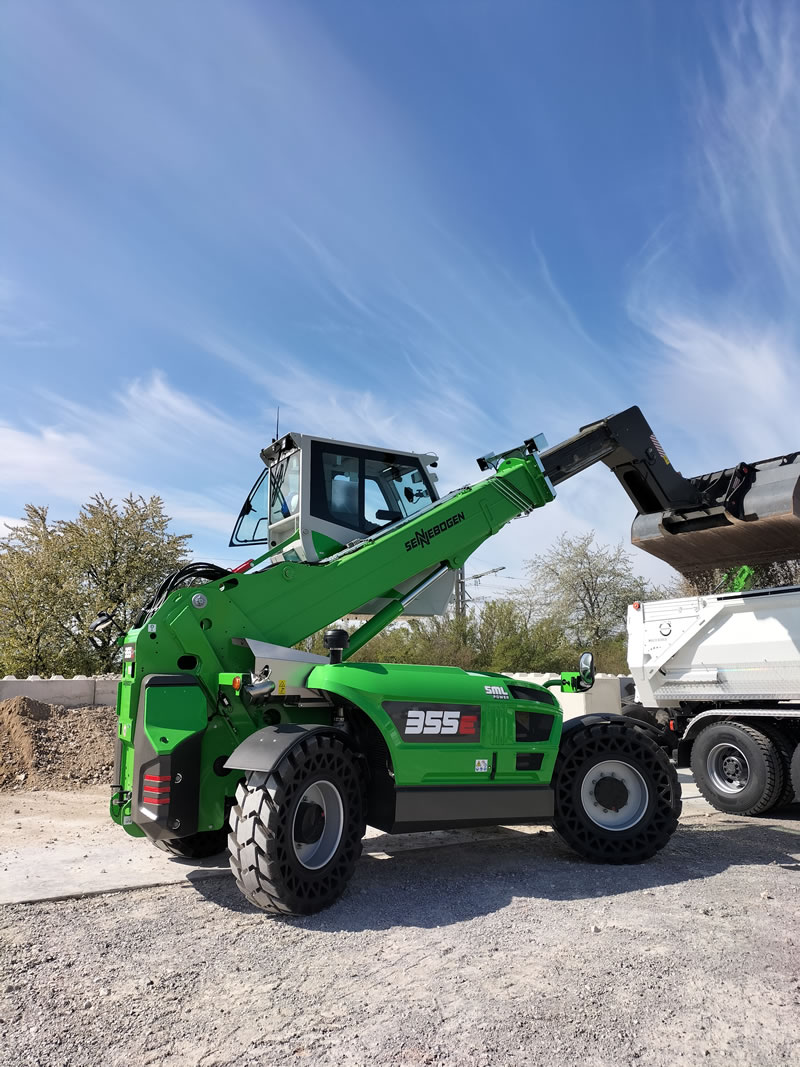 Le chargeur télescopique à cabine élévatrice, véritable spécificité de Sennebogen, se distingue des télescos dits « classiques » notamment par sa structure mécanique HD pour applications sévères et par une élévation du champs de vision de l'opérateur à plus de 4 mètres.
