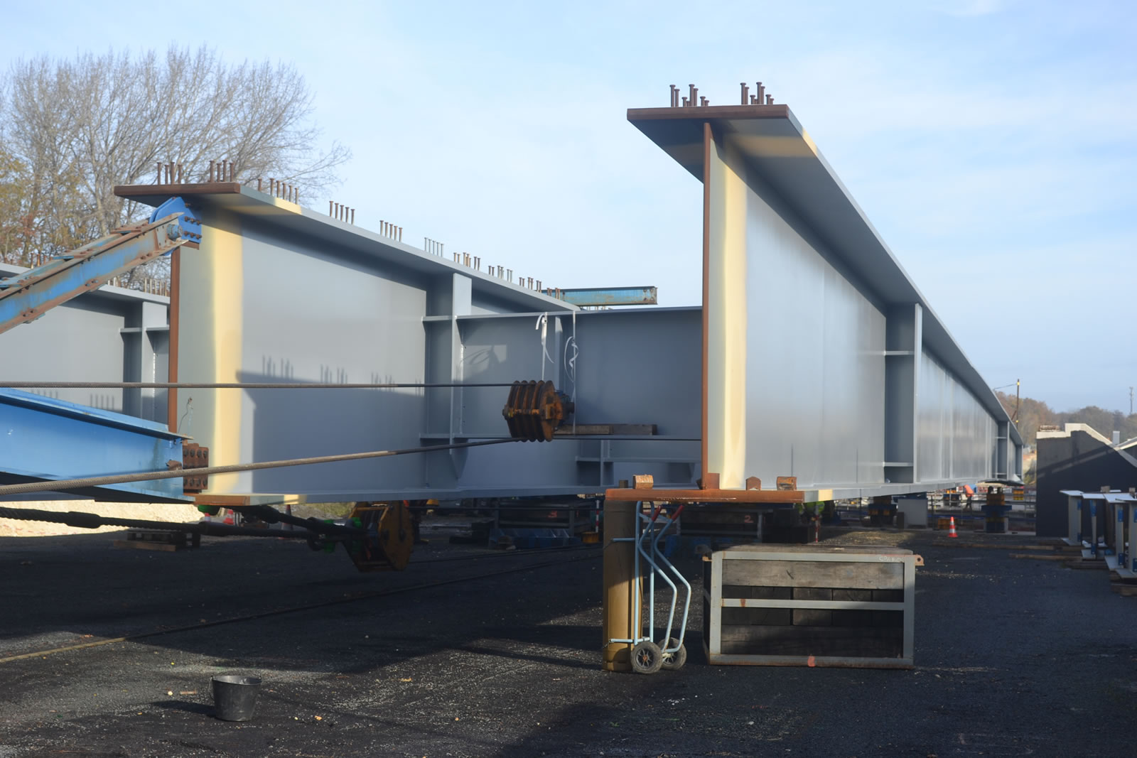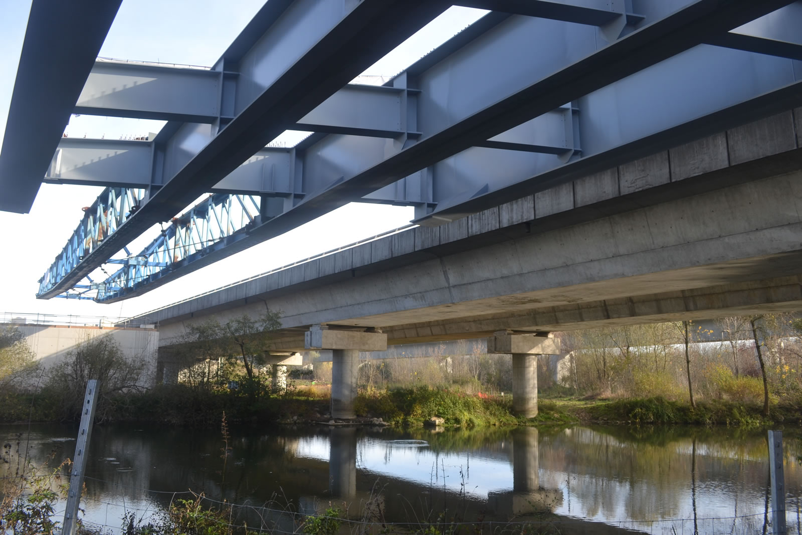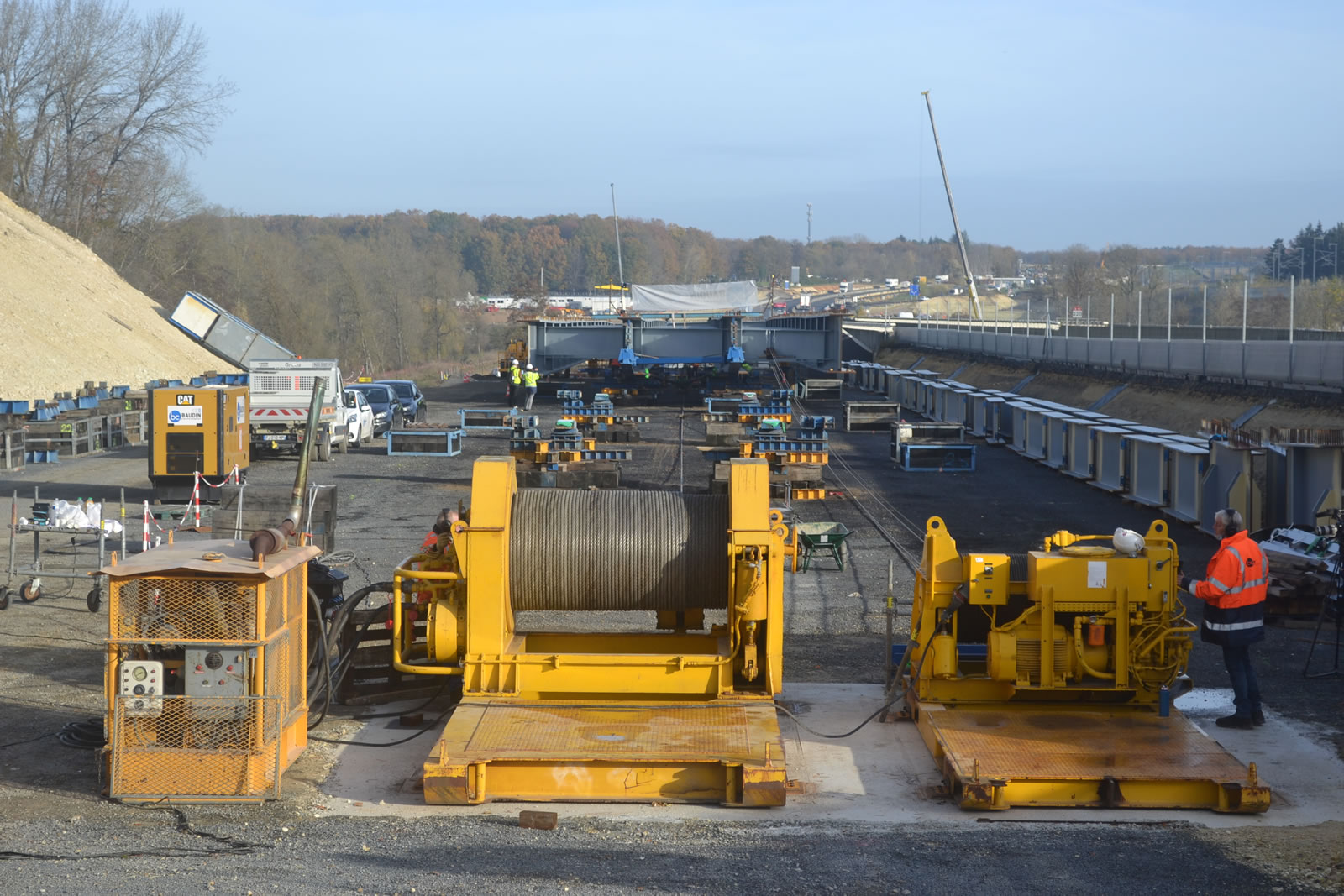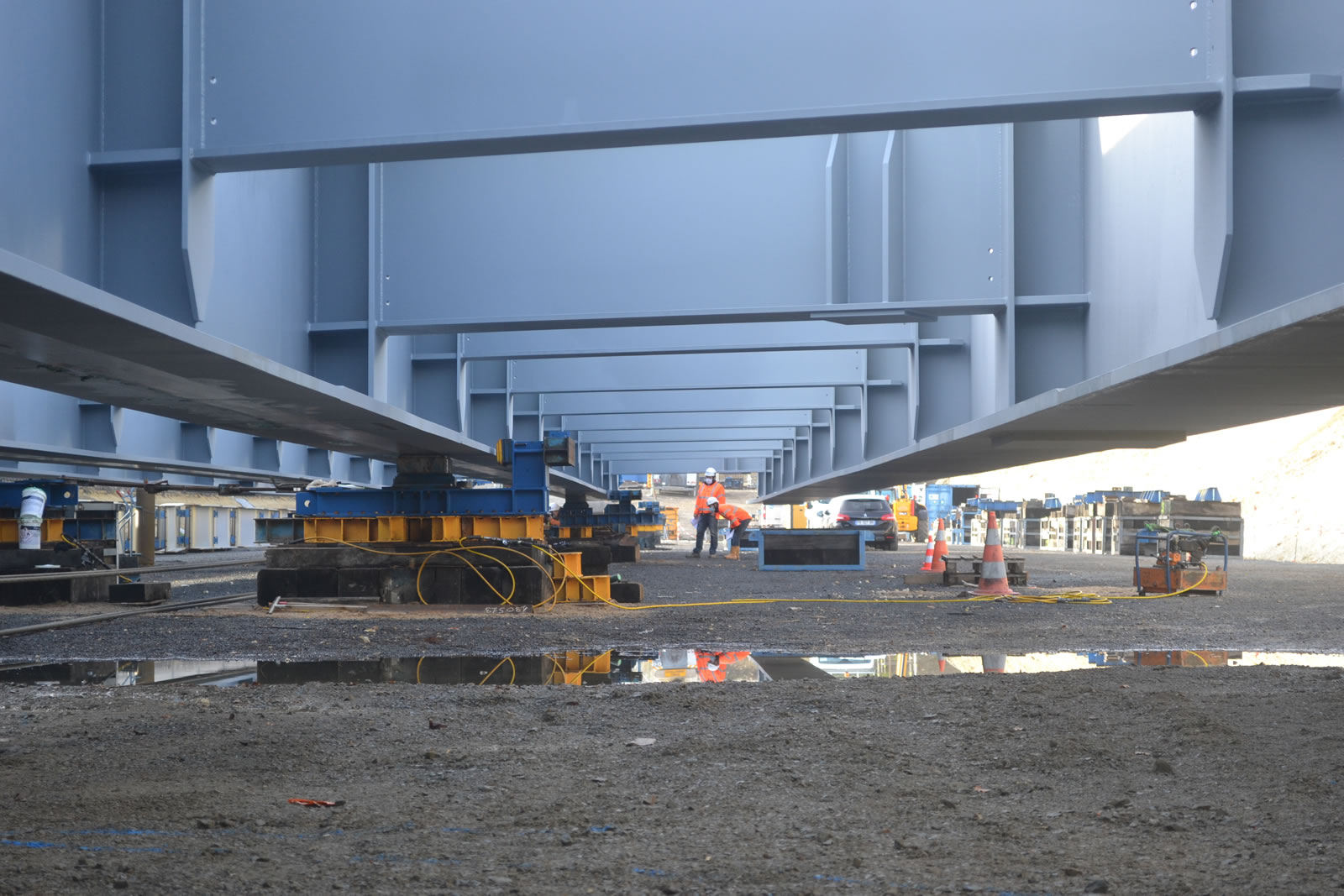Vue sous l'A10 (viaduc existant à côté des poutres en cours de lançage).