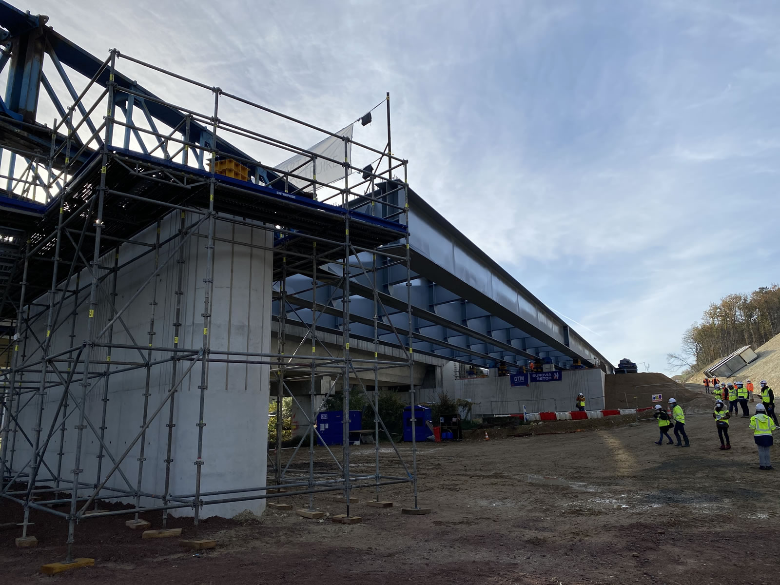 Le 17 novembre dernier, le chantier du viaduc de l’Indre a connu une étape importante avec le premier lançage de poutres métalliques ; une opération d’1h30 environ qui a mobilisé une quarantaine de personnes sur le chantier. Arrivées en juillet 2020 puis assemblées sur place, les poutres métalliques ont été lancées depuis la plateforme située au niveau de la culée sud de l’ouvrage. Une telle opération a nécessité plusieurs semaines de préparation. Un second lançage est prévu pour février 2021.