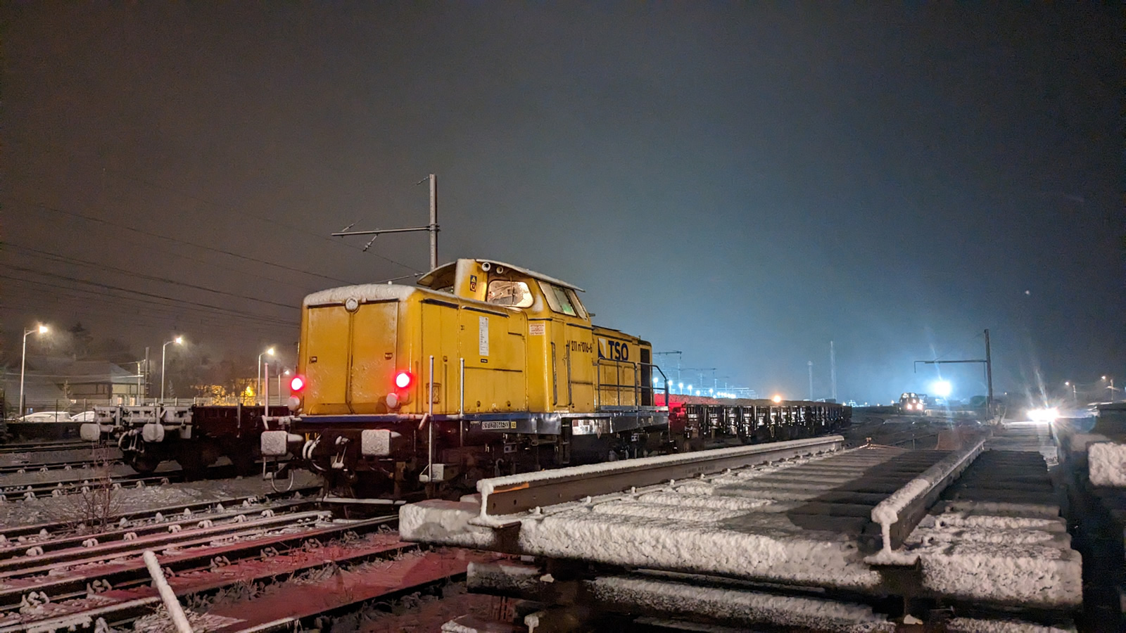 L’intégration de cette opération à cette campagne hivernale est dû à son emplacement particulier, comme le précise Christophe Chauvin : « le PN 48 dessert trois habitations et un restaurant, or les travaux de la suite rapide sont programmés sur 4 semaines… Fermer le seul accès à ce restaurant pendant son pic d’activité était tout simplement inenvisageable. Le fait de traiter ce PN en hors suite permet de réduire la durée de fermeture à deux semaines ». Une occasion donc pour renouveler les deux voies de ce PN tout en remplaçant l’ancien platelage en bois datant des années 70 « Nous renouvelons tout le linéaire entre Le Theil-la-Rouge et Chartres ce qui intègre le PN 48 » poursuit Christophe Chauvin. Pour mener à bien ce chantier hors suite, près de 50 compagnons ont été mobilisés pour traiter les 72 m (36 m par voie). Des travaux effectués de nuit pendant l’interruption nocturne du trafic, imposant un rendu des voies à 5h30. Après les opérations de tronçonnage des rails et de dépose des voies par panneaux, l’ancien ballast est enlevé à l’aide de deux pelles rail-route ACX24RR maniées de mains de maître par « Shrek » et « Blondin » : « les deux pelleurs sont vraiment très bons sur toutes les phases du chantier » confie l’un des opérateurs sur place. Une opération de terrassement, qui assure le dégarnissage de la plateforme sous traverse. Après le compactage du ballast neuf, les nouveaux panneaux de 12 m, préalablement préparé sur la base arrière de La Loupe sont installés. « La préparation en base arrière est primordiale pour que l’on puisse tenir les délais et rendre les voies à l’heure. Après assemblage, les panneaux sont marqués et rangés sur le train travaux dans l’ordre du calepinage préalablement établi » indique Youssef Chouai RLT SNCF Réseau. A noter que ces derniers intègrent des rails « mannequin ». Solution utilisée pour dimensionner les panneaux et qui seront remplacés lors d’une opération de RR programmée la nuit suivante.